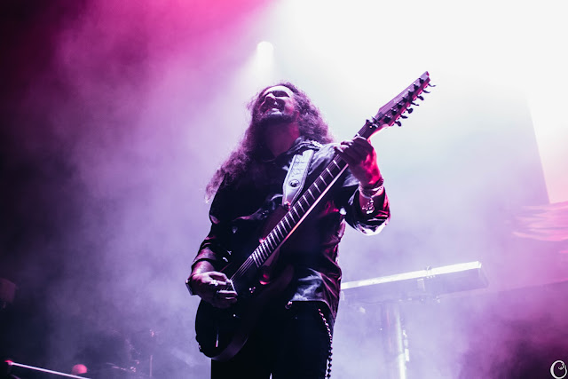 The setlist was an excellent alternation of new and older songs ("Essence Of Silence", "Victims of Contigency", "Unchain Utopia", "The Skeleton Key"), but I truly think Simone shone on "The Final Lullaby", where she sang the parts of Jørgen Munkeby in the verse, with Asim assisting in the chorus, and on "Rivers", where the members took a small break, leaving the singer and Janssen to kick off the power ballad under the crowd's flashes lighting the stage. I was also pleasantly surprised to hear "Fools Of Damnation" and "Code Of Life", which is still one of my absolute favorites off of "Omega". Speaking of surprises, Epica decided to seize the opportunity to premiere the song "The Miner", where they first collaborated with Searah. Although not my favorite song on "The Alchemy Project", it was interesting to hear it live for the first time -and see Simone occasionally peeking into a cheat sheet for the lyrics.